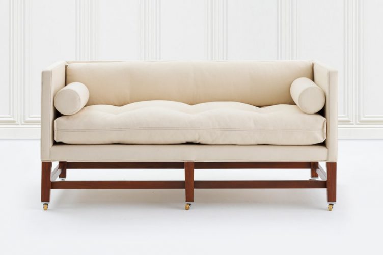Elegant yet comfortable, our two-seater Giacomo is a rendition of the classic tuxedo shape. The legs are in solid beech wood, set on chrome castors and boxwood wheels. It can be upholstered in a variety of fabrics. This one is in pure cream cotton – a fresh choice. Product dimensions:...